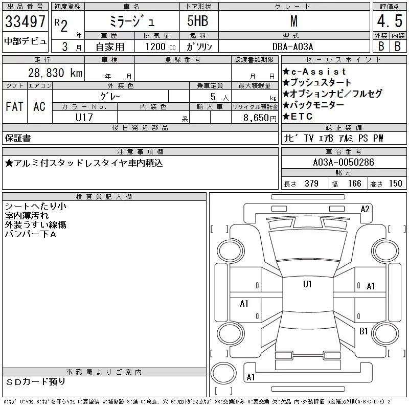 Mitsubishi MIRAGE с аукциона Японии CAA Chubu лот № 33497