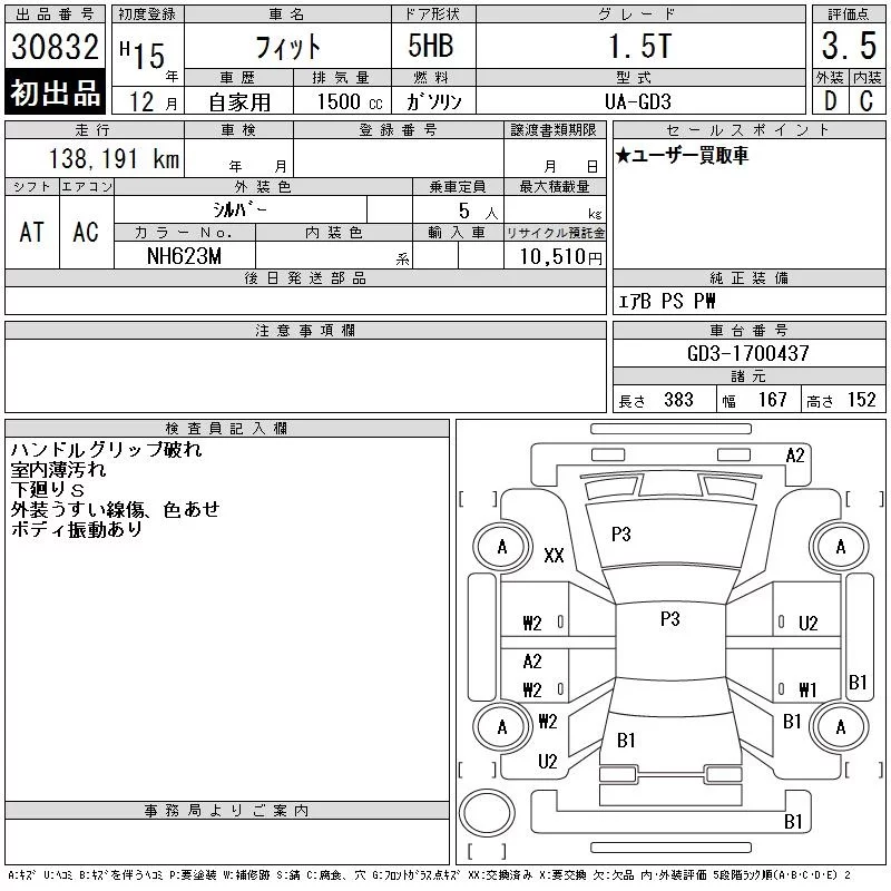 Honda FIT с аукциона Японии CAA Chubu лот № 30832