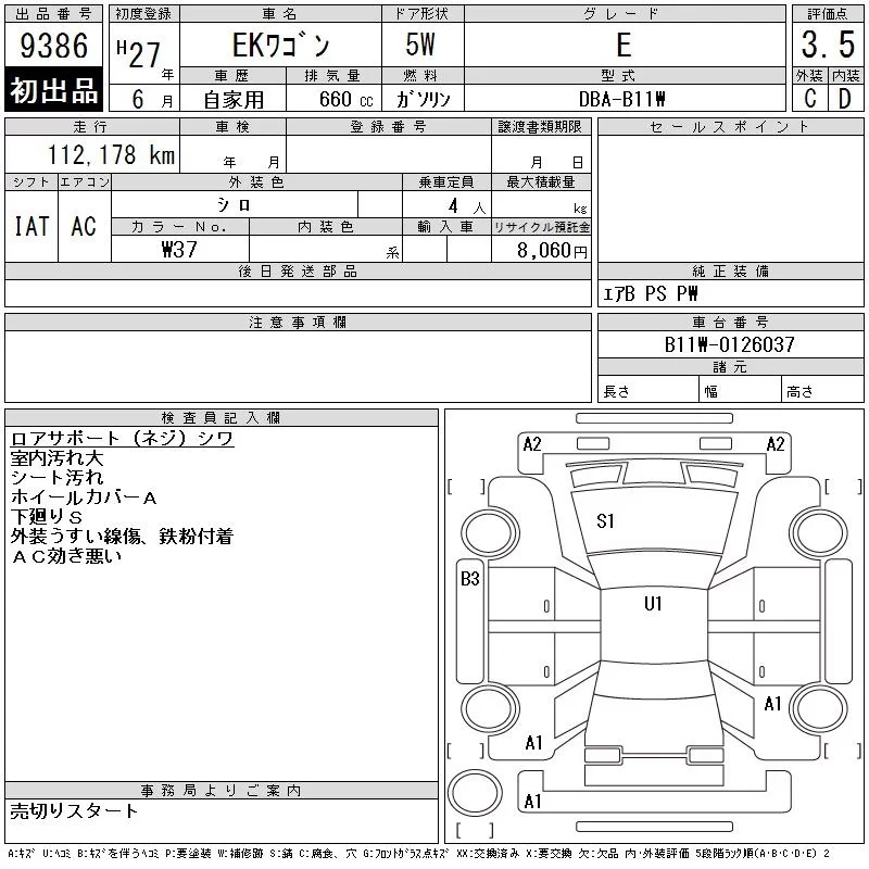 Mitsubishi EK WAGON с аукциона Японии CAA Chubu лот № 9386
