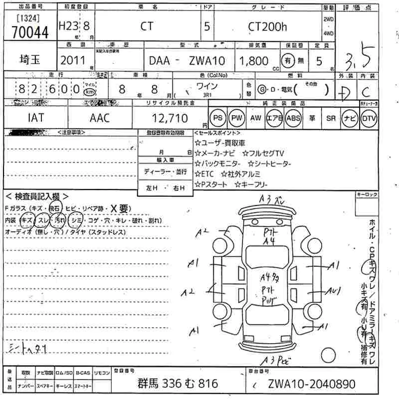 Lexus CT с аукциона Японии MIRIVE Saitama лот № 70044
