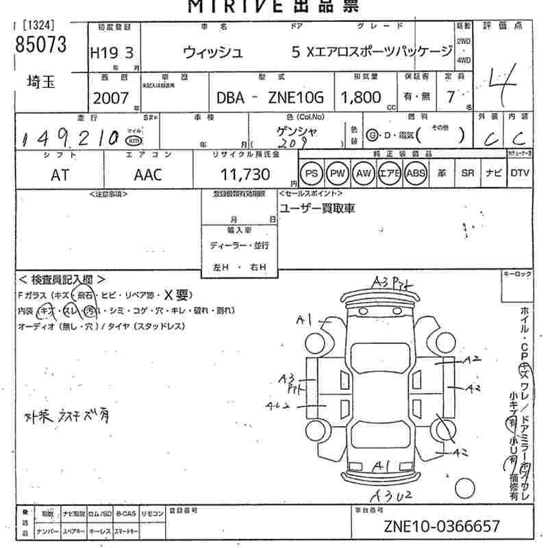 Toyota WISH с аукциона Японии MIRIVE Saitama лот № 85073