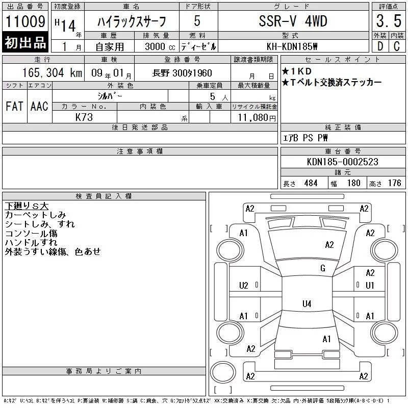 Toyota HILUX SURF с аукциона Японии CAA Chubu лот № 11009