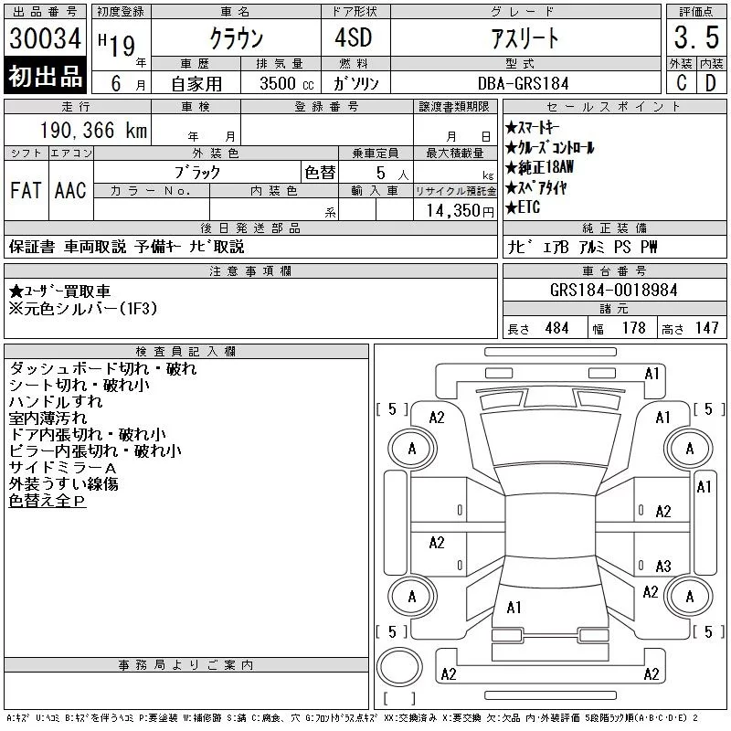 Toyota CROWN с аукциона Японии CAA Chubu лот № 30034