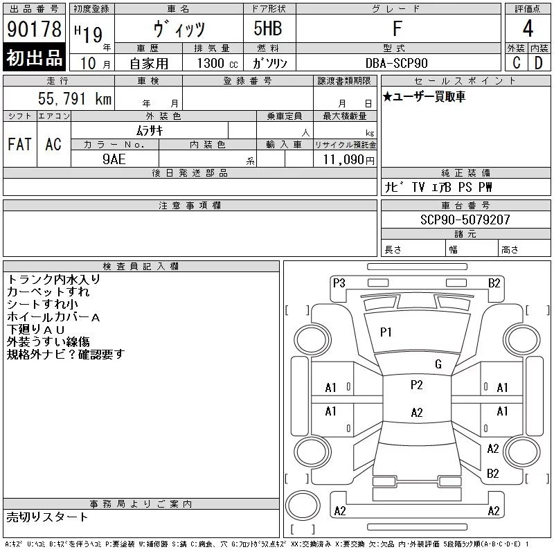 Toyota VITZ с аукциона Японии CAA Chubu лот № 90178