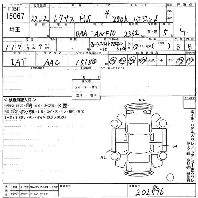 Lexus HS с аукциона Японии MIRIVE Saitama лот № 15067