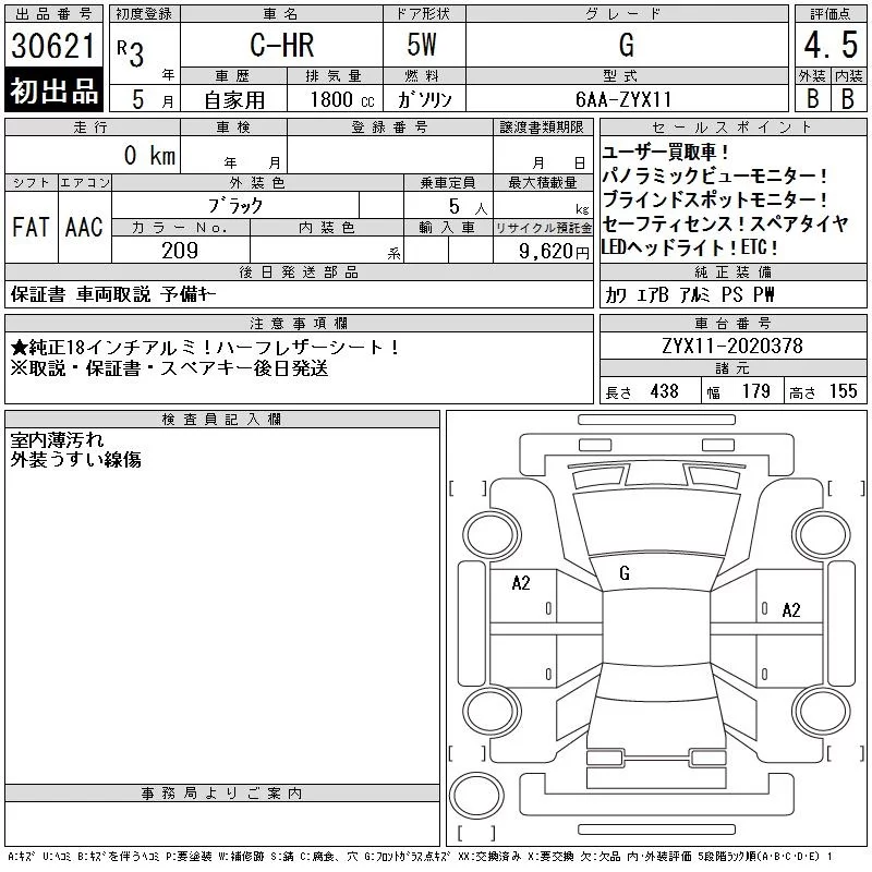 Toyota C-HR с аукциона Японии CAA Chubu лот № 30621