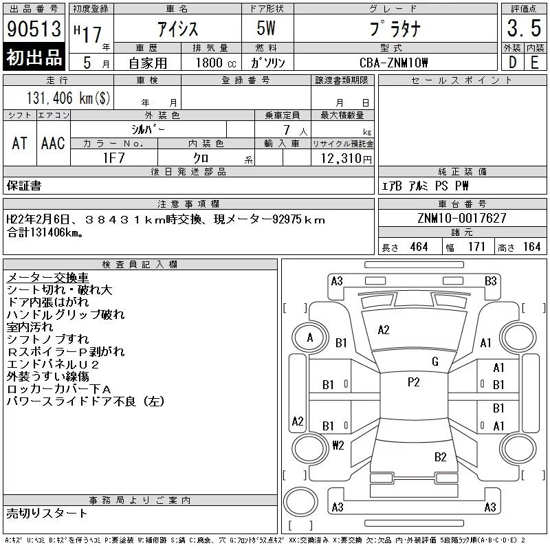 Toyota ISIS с аукциона Японии CAA Chubu лот № 90513