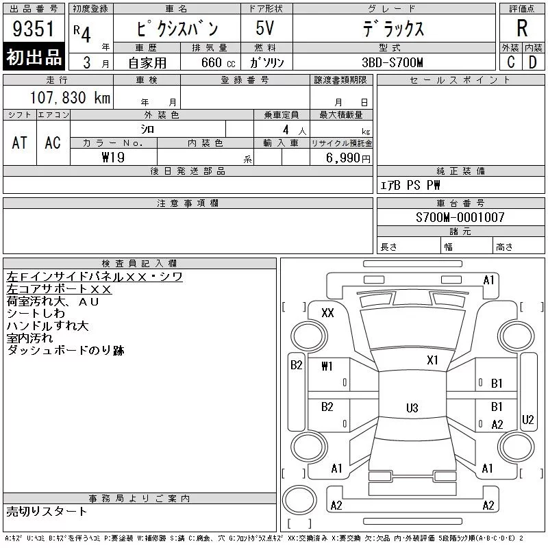 Toyota PIXIS VAN с аукциона Японии CAA Chubu лот № 9351