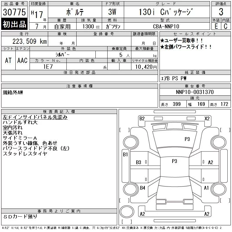 Toyota PORTE с аукциона Японии CAA Chubu лот № 30775