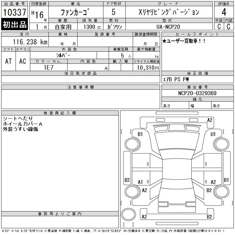 Toyota FUNCARGO с аукциона Японии CAA Chubu лот № 10337