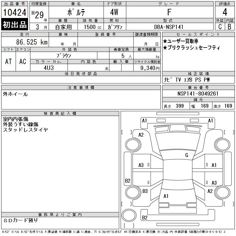 Toyota PORTE с аукциона Японии CAA Chubu лот № 10424