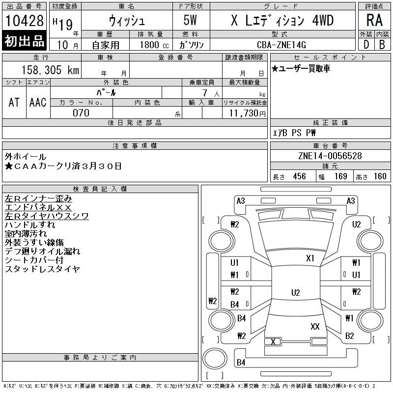 Toyota WISH с аукциона Японии CAA Chubu лот № 10428