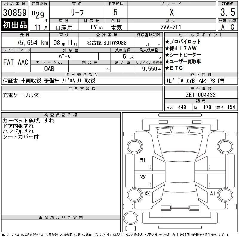 Nissan LEAF с аукциона Японии CAA Chubu лот № 30859