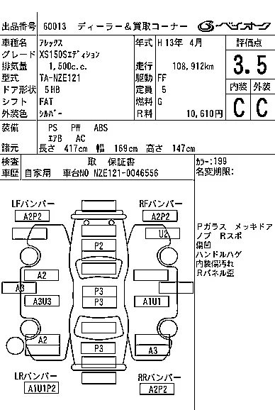 Toyota ALLEX с аукциона Японии BAYAUC лот № 60013