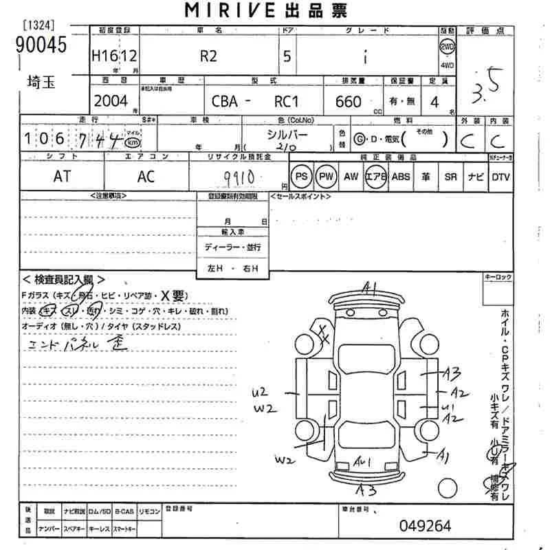Subaru R2 с аукциона Японии MIRIVE Saitama лот № 90045