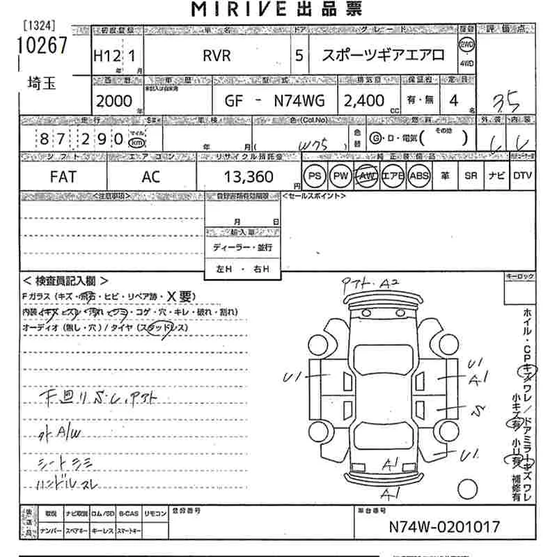 Mitsubishi RVR с аукциона Японии MIRIVE Saitama лот № 10267