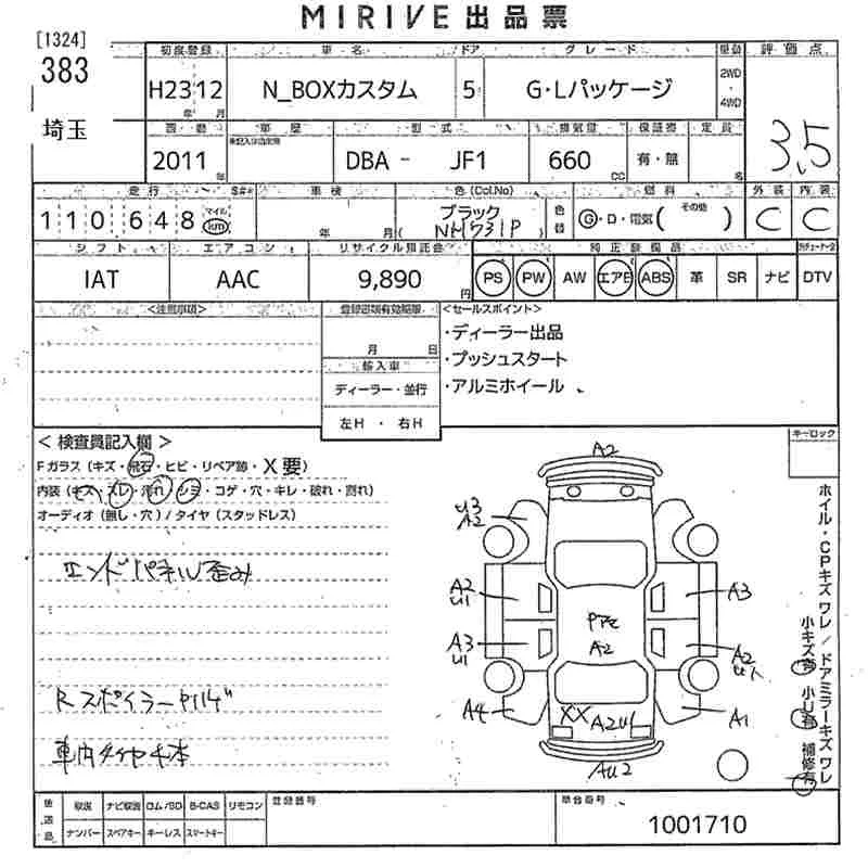 Honda N BOX с аукциона Японии MIRIVE Saitama лот № 383