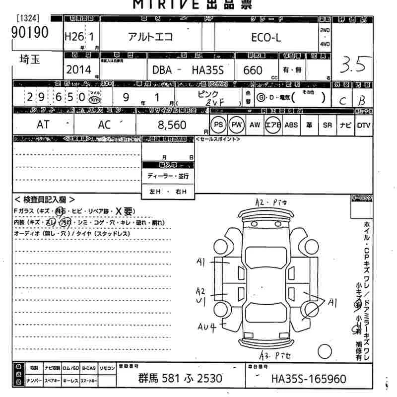 Suzuki ALTO ECO с аукциона Японии MIRIVE Saitama лот № 90190