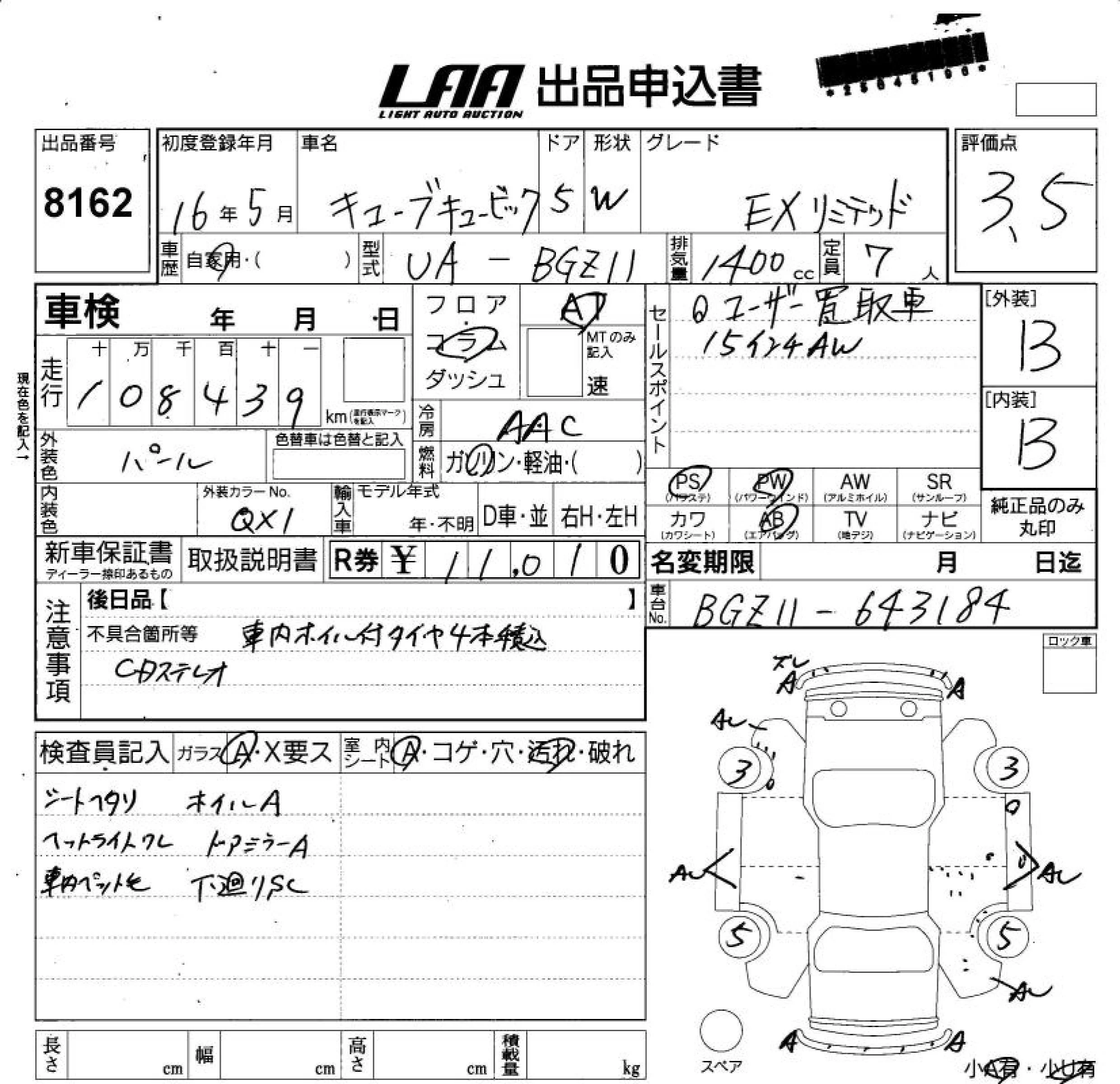 Nissan CUBECUBIC с аукциона Японии LAA Shikoku лот № 8162