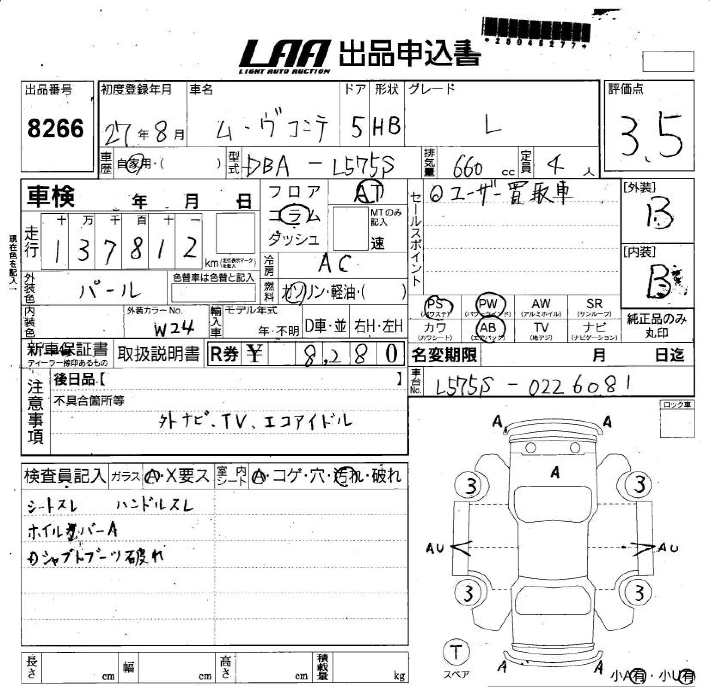 Daihatsu MOVE CONTE с аукциона Японии LAA Shikoku лот № 8266
