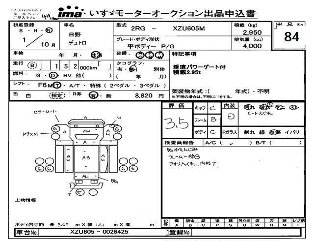 Hino DUTRO с аукциона Японии Isuzu Tokyo лот № 84