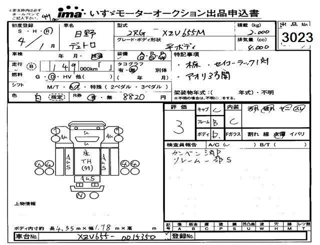 Hino DUTRO с аукциона Японии Isuzu Tokyo лот № 3023