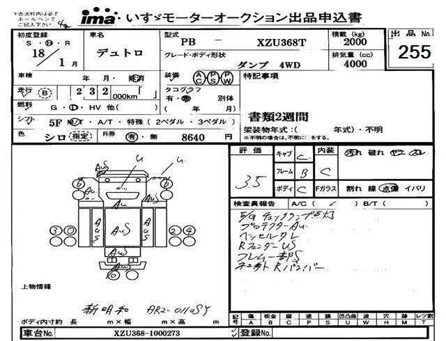 Hino DUTRO с аукциона Японии Isuzu Tokyo лот № 255