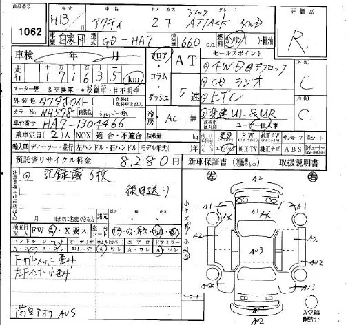 Honda ACTY TRUCK с аукциона Японии IAA Osaka лот № 1062