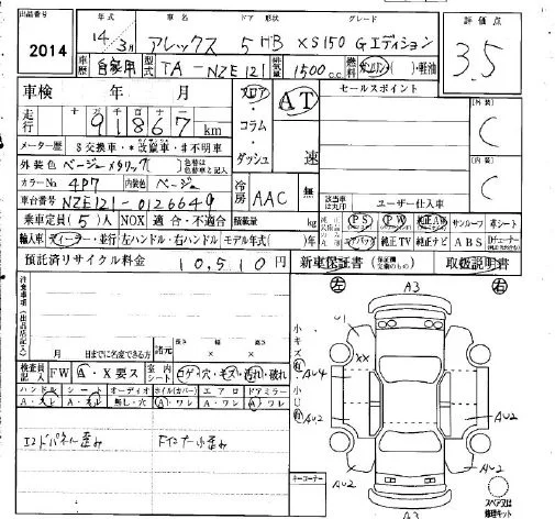 Toyota ALLEX с аукциона Японии IAA Osaka лот № 2014