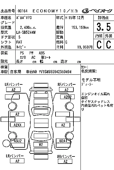 Volvo V70 с аукциона Японии BAYAUC лот № 164