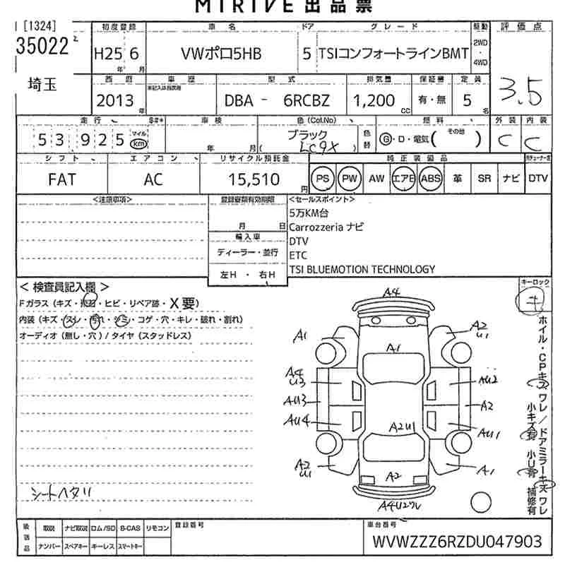 Volkswagen Polo с аукциона Японии MIRIVE Saitama лот № 35022