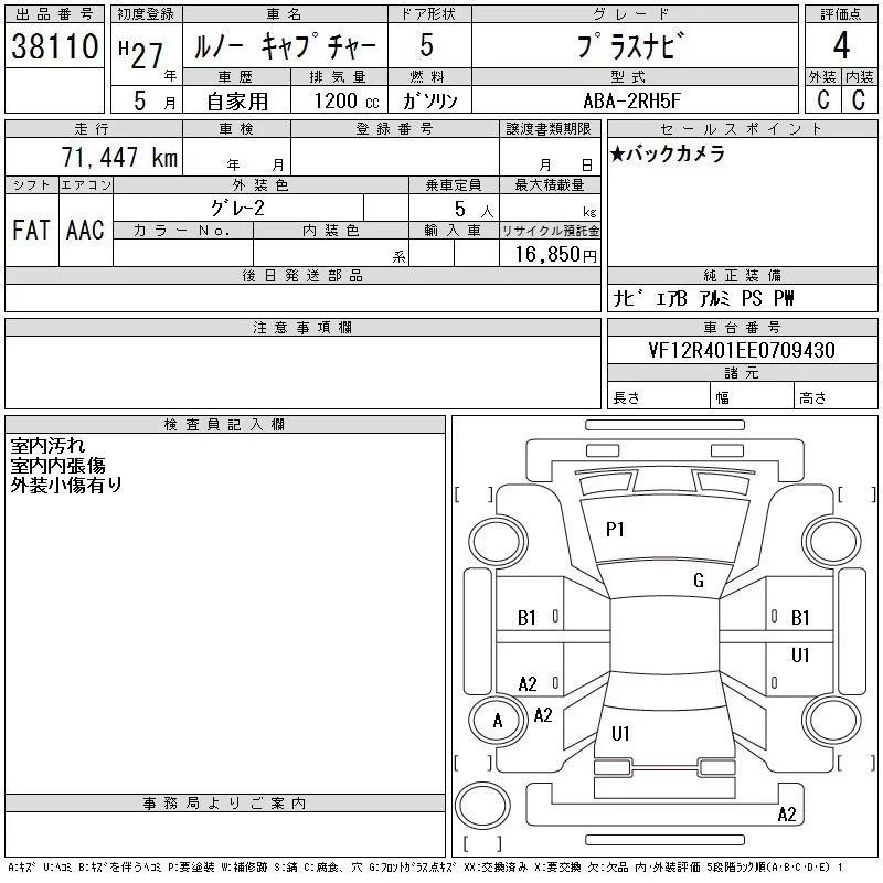 Renault Captur с аукциона Японии CAA Chubu лот № 38110