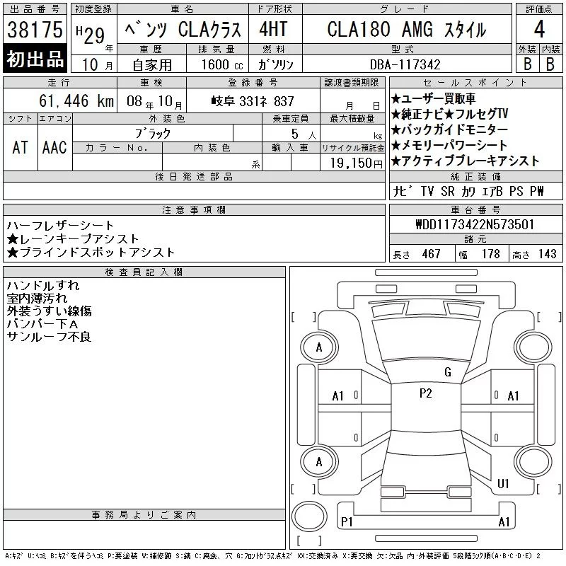 Mercedes-Benz CLA CLASS с аукциона Японии CAA Chubu лот № 38175