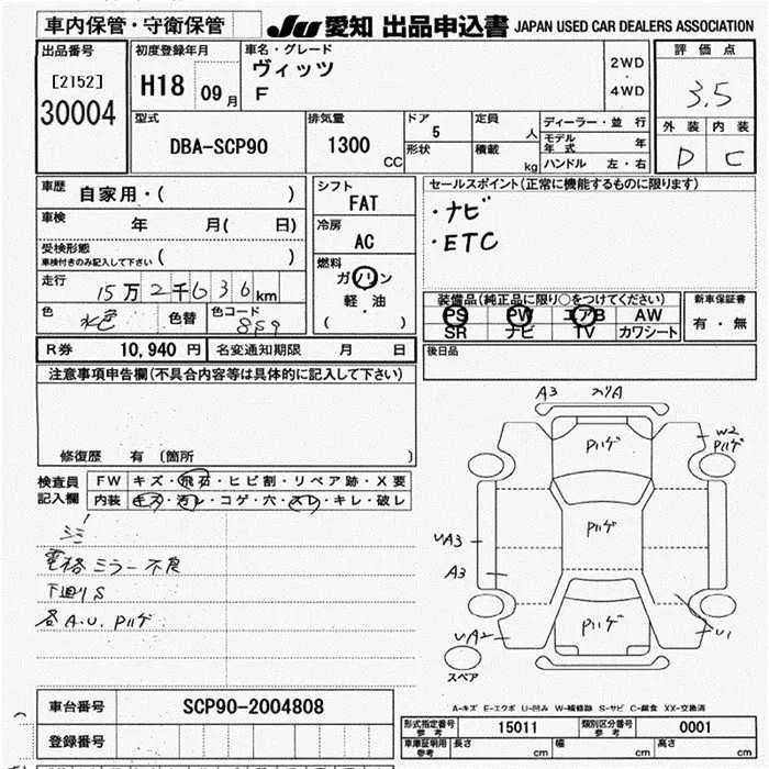 Toyota VITZ с аукциона Японии JU Aichi лот № 30004