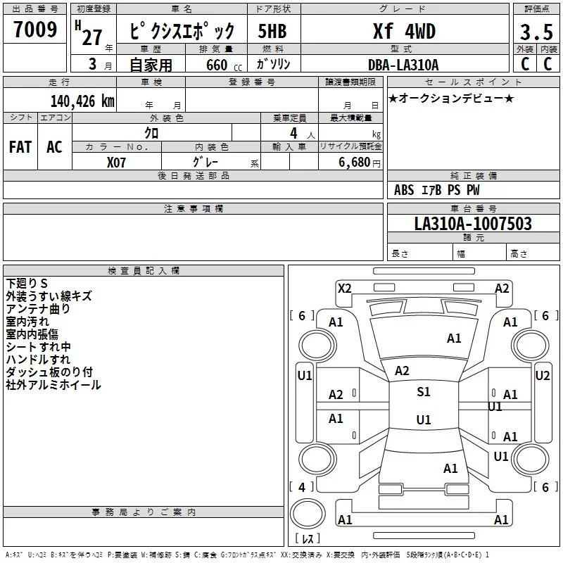 Toyota PIXIS EPOCH с аукциона Японии TAA Hokkaido лот № 7009