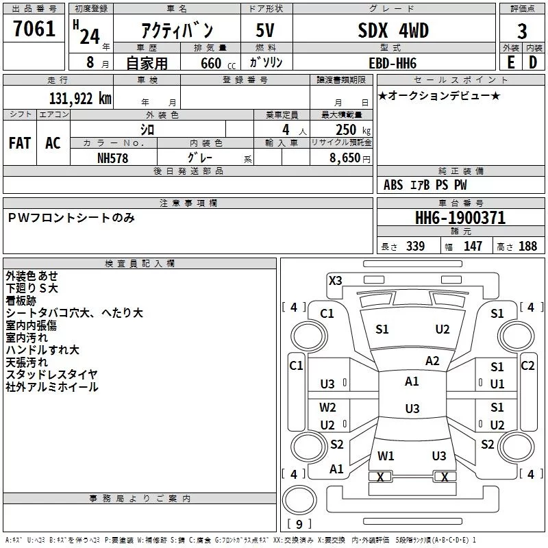 Honda ACTY VAN с аукциона Японии TAA Hokkaido лот № 7061