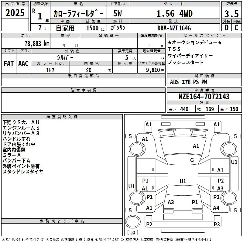 Toyota COROLLA FIELDER с аукциона Японии TAA Hokkaido лот № 2025