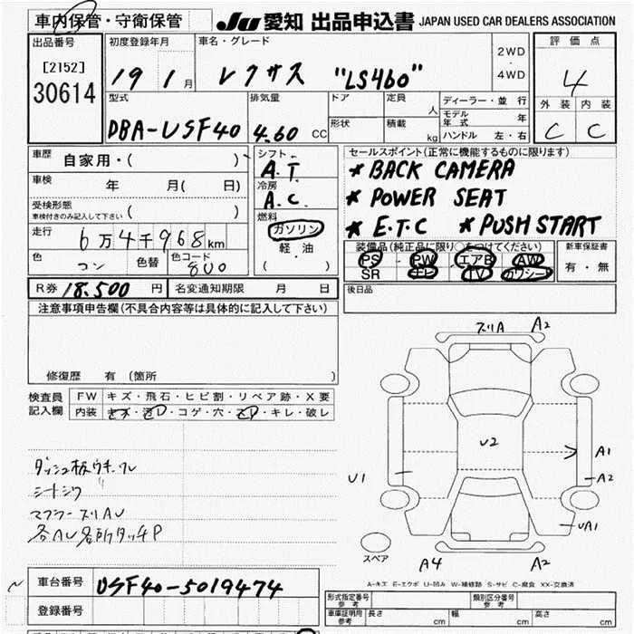 Lexus LS с аукциона Японии JU Aichi лот № 30614