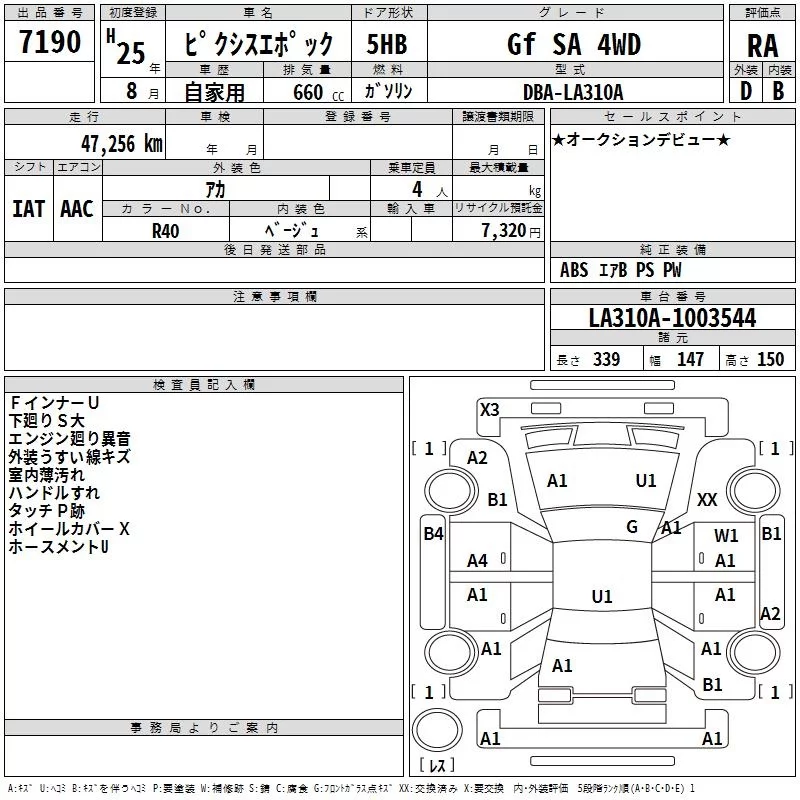 Toyota PIXIS EPOCH с аукциона Японии TAA Hokkaido лот № 7190