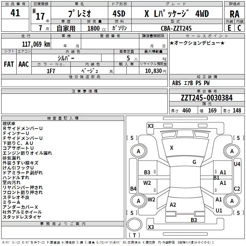 Toyota PREMIO с аукциона Японии TAA Hokkaido лот № 41