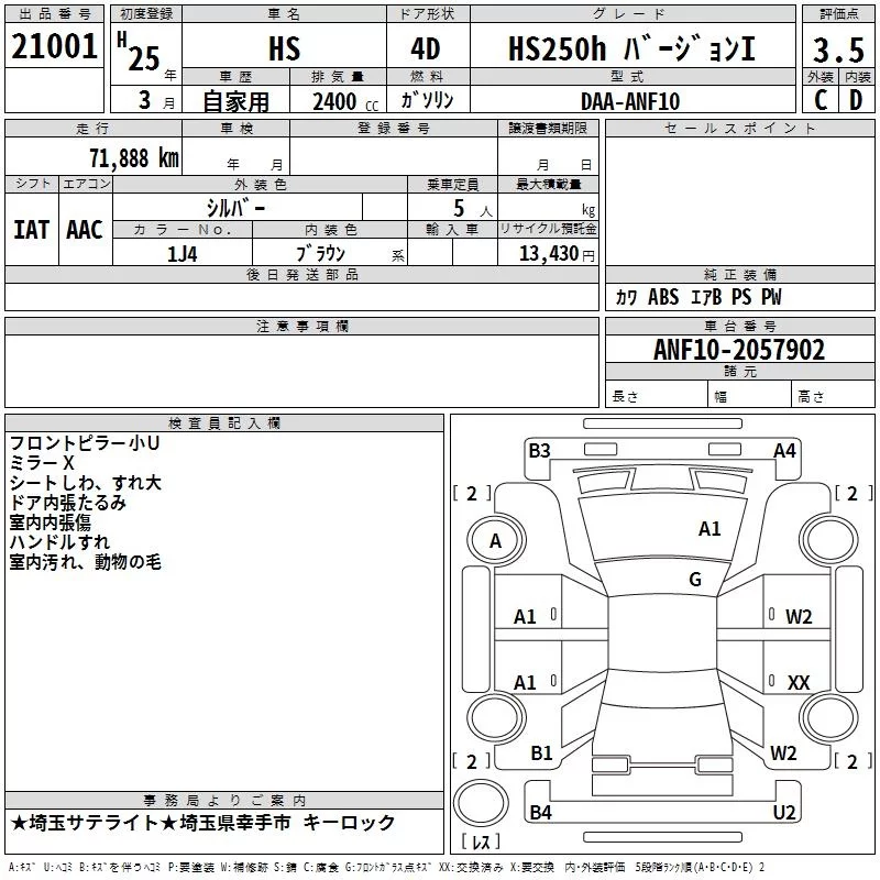 Lexus HS с аукциона Японии TAA Kanto лот № 21001