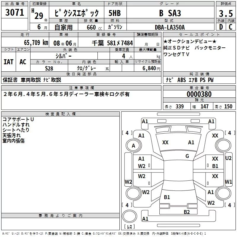 Toyota PIXIS EPOCH с аукциона Японии TAA Kanto лот № 3071