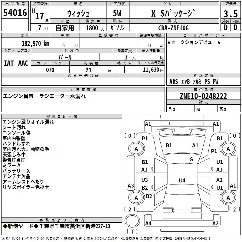 Toyota WISH с аукциона Японии TAA Kanto лот № 54016