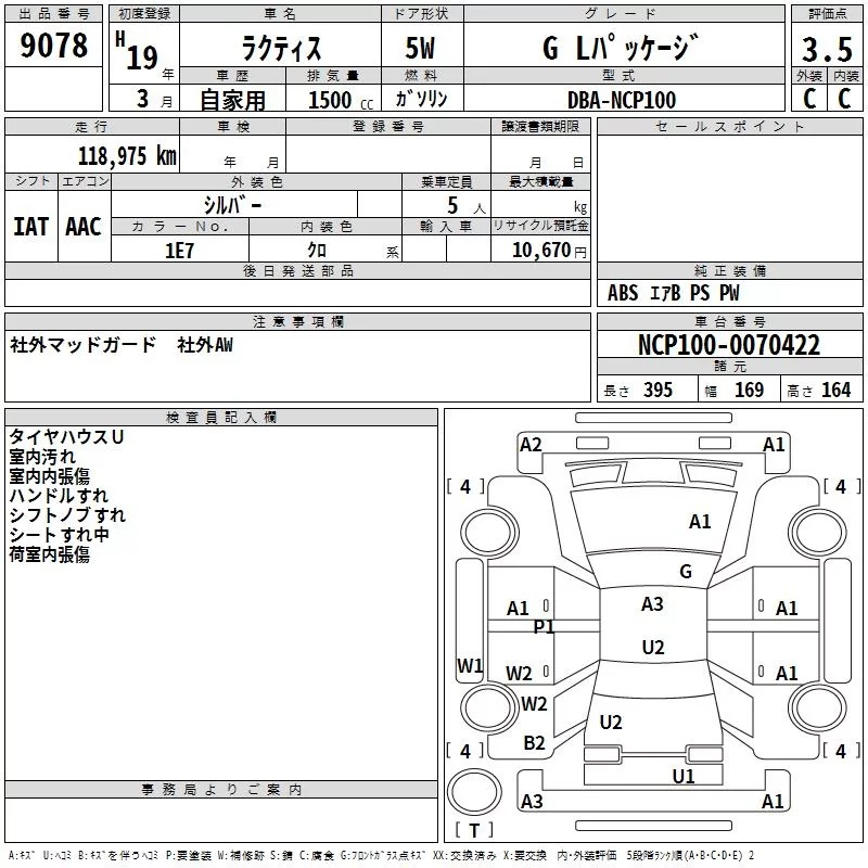 Toyota RACTIS с аукциона Японии TAA Kanto лот № 9078
