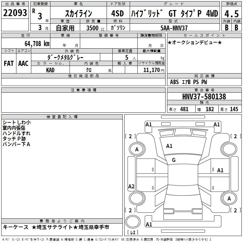 Nissan SKYLINE с аукциона Японии TAA Kanto лот № 22093