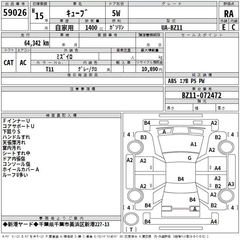 Nissan CUBE с аукциона Японии TAA Kanto лот № 59026