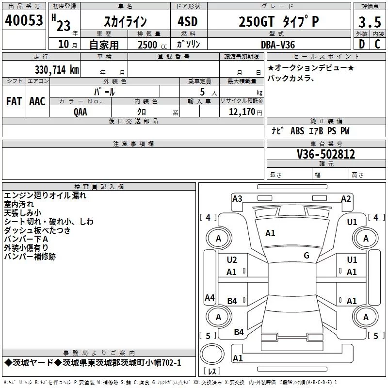 Nissan SKYLINE с аукциона Японии TAA Kanto лот № 40053