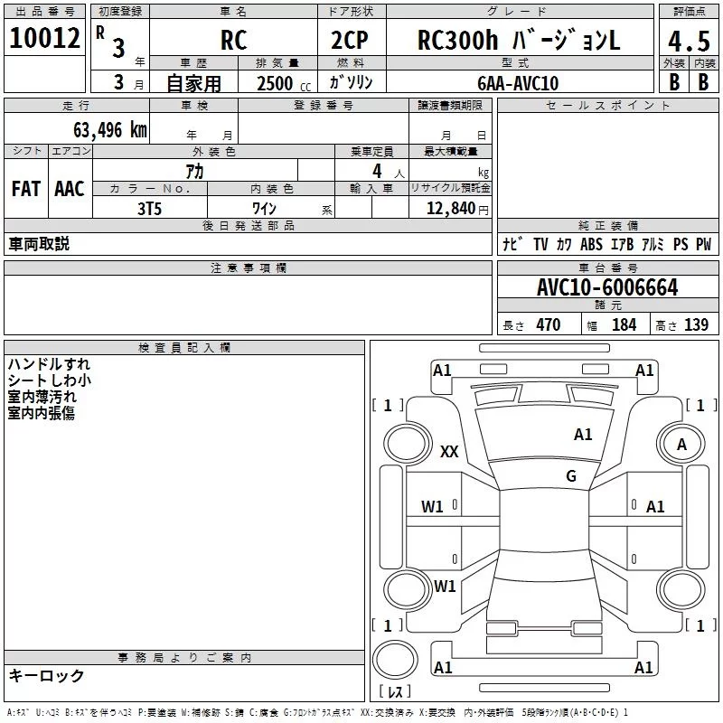 Lexus RC с аукциона Японии TAA Kanto лот № 10012