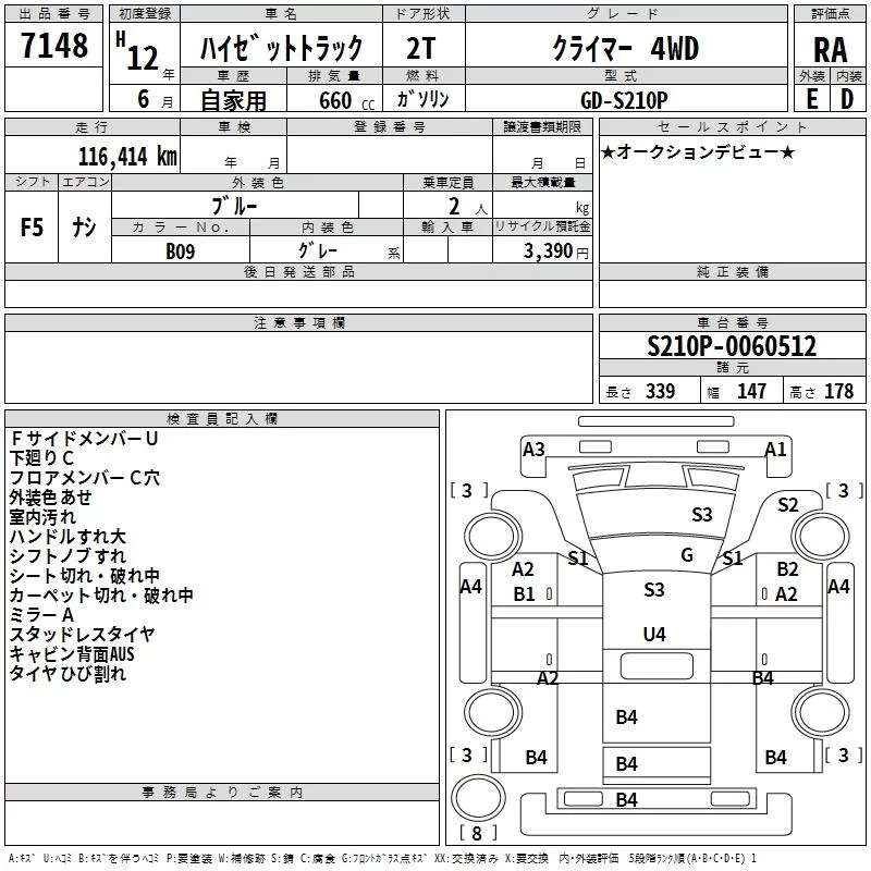 Daihatsu HIJET TRUCK с аукциона Японии TAA Hokkaido лот № 7148