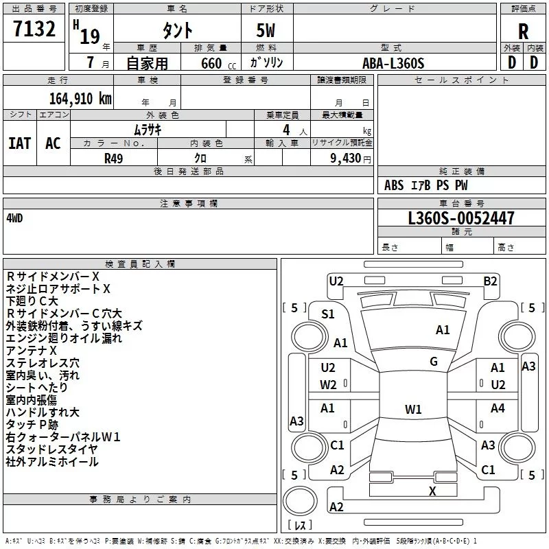 Daihatsu TANTO с аукциона Японии TAA Hokkaido лот № 7132